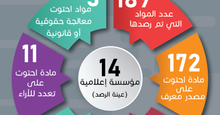 91% من المواد الصحفية اعتمدت على مصادر معرفة ... و7.4% استندت لآراء متعددة، و1.6% قدمت معالجات حقوقية. 28 خطاب كراهية غير مكررة من 189 مادة في تغطيات مسلسل "جن". المعالجة الحقوقية والقانونية الجانب