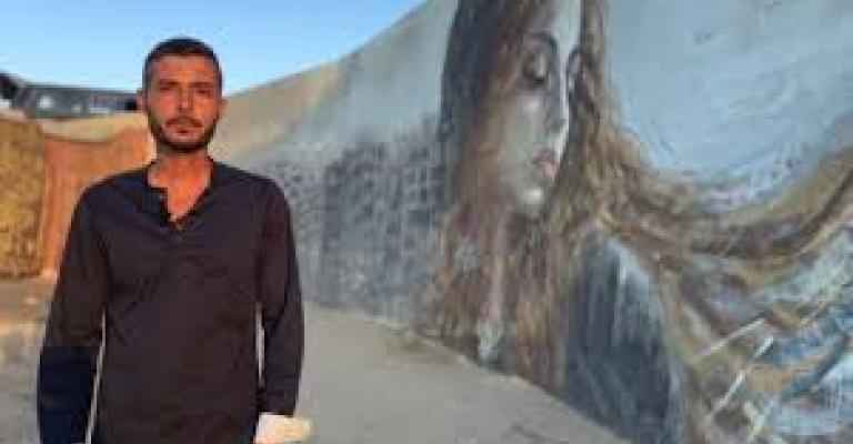 في جدارية فنية تجمع أبرز مآسي الفلسطينيين بقطاع غزة، دشن الفنان الفلسطيني عصام مخيمر لوحته الفنية وسط خيام النازحين في دير البلح بقطاع غزة. وقد جسّد مخيمر حال غزة بوجه سيدة شاحب وحزين، وبجانبها بنايات