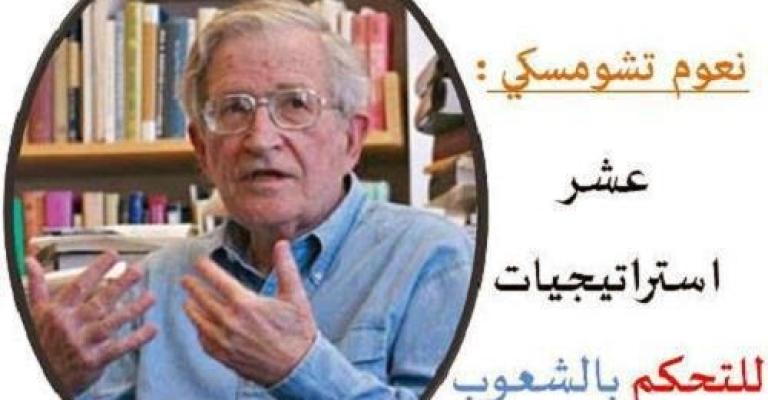 البروفيسور _نعوم _تشومسكي .في يناير 2011 أعد تشومسكي قائمة الطّرق التي تستعملها وسائل الإعلام العالميّة للسيطرة على الشّعوب عبر وسائل الإعلام في 10 استراتيجيّات أساسيّة:(1) استراتيجيّة_الإلهاء:هذه