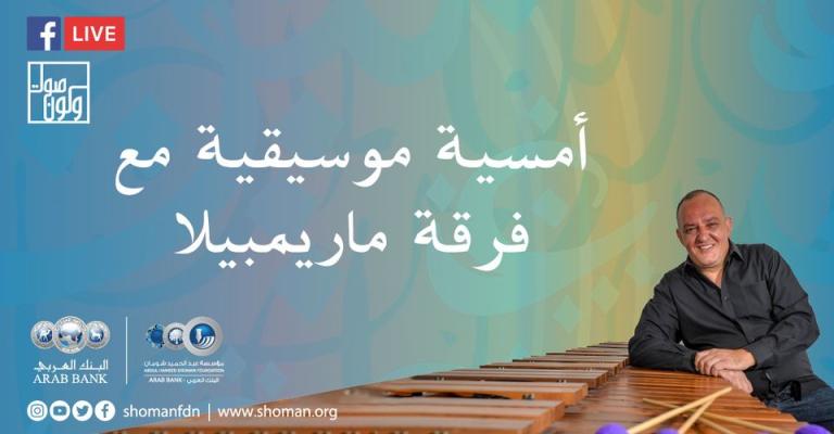 تحيي فرقة ماريمبيلا يوم غد الخميس، أمسية موسيقية تنظمها مؤسسة عبد الحميد شومان ضمن برنامج "صوت ولون " وذلك في مقر المؤسسة بجبل عمان. وسيقوم الفنان محمد طه خلال الأمسية بالعزف على آلة "الماريمبا"