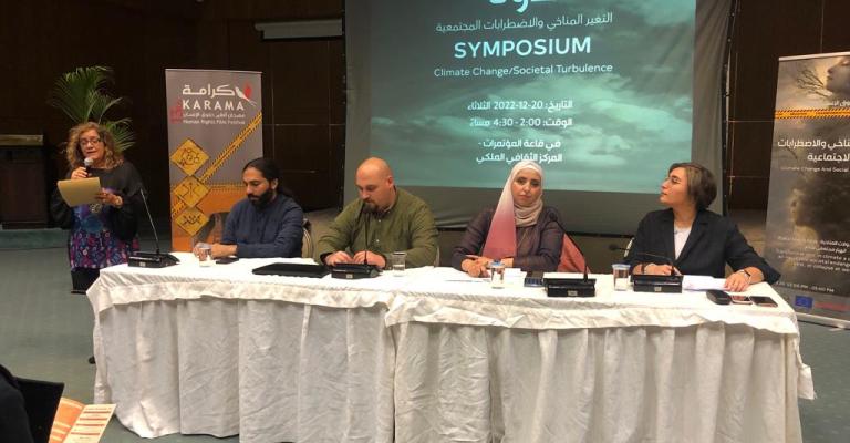 عمان نظم "مهرجان كرامة لأفلام حقوق الإنسان" في يومه قبل الأخير أمس الثلاثاء، ضمن فعالياته الموازية ندوة بعنوان " التغير المناخي والاضطرابات المجتمعية " تحدثت عن التحولات الجذرية وظهور أزمات متفاقمة