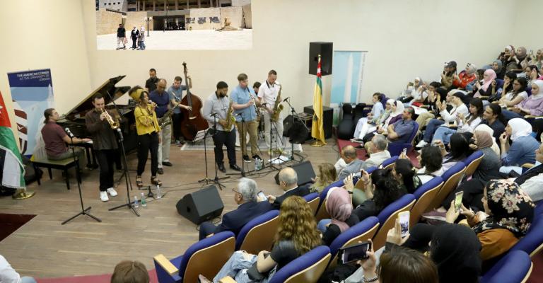 نظمت كلية الفنون بالجامعة الأردنية بالتعاون مع السفارة الأمريكية في عمان، اليوم حفلٍ لموسيقى الجاز بهدف تعزيز فكرة التبادل الثقافي من خلال الموسيقى. وشارك في الحفل فرقة طلابية أمريكية من معهد "هيربي