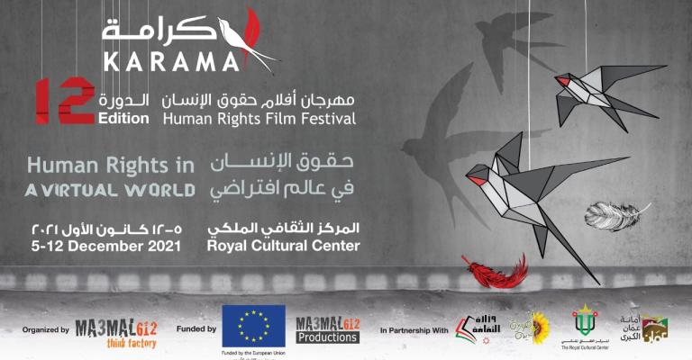 ينطلق مهرجان كرامة لأفلام حقوق الإنسان في دورته الثانية عشرة تحت عنوان «حقوق الإنسان في عالم افتراضي» محاكياً ما فرضته آثار جائحة كوفيد 19 بالتحوّل إلى عالم افتراضي في كافة المجالات، كما فرض إعادة