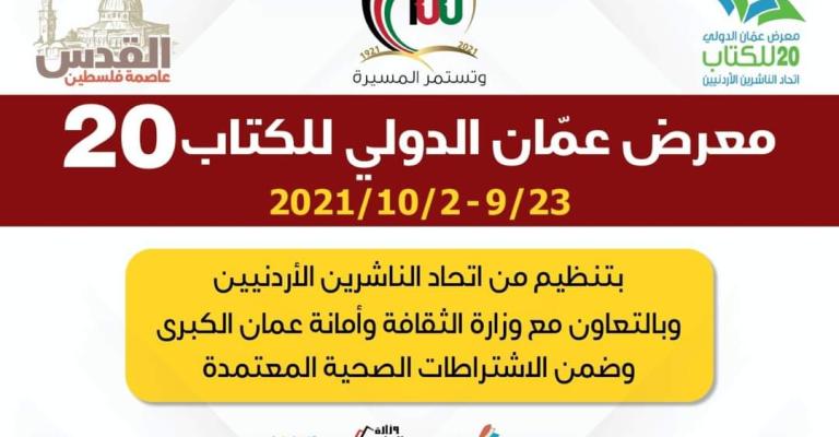 تنطلق تحت الرعاية الملكية السامية، في 23 أيلول 2021 فعاليات معرض عمان الدولي للكتاب في دورته (20) الذي يقيمه اتحاد الناشرين الأردنيين بالتعاون مع وزارة الثقافة، وأمانة عمان الكبرى ضمن احتفالات المملكة