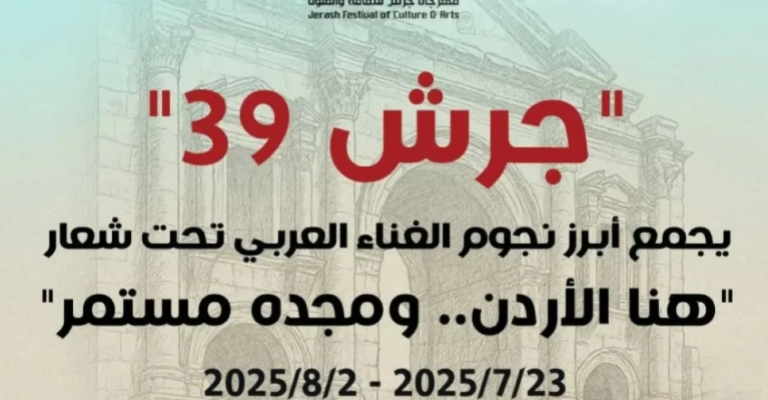 تنطلق الأربعاء، الدورة الـ39 لمهرجان جرش للثقافة والفنون التي تحمل هذا العام شعار "هنا الأردن... ومجده مستمر"، بمشاركة مغنين وفرق موسيقية محلية وأجنبية، تحت رعاية جلالة الملك عبدالله الثاني. ويقام