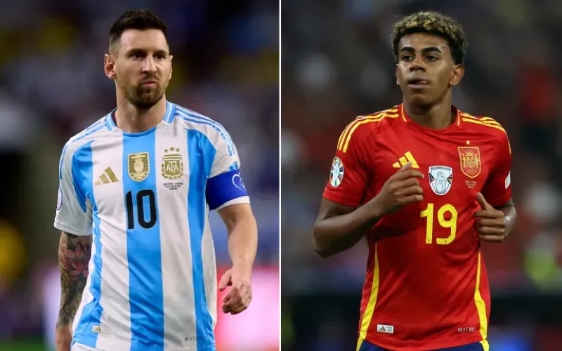 - 25: من المحتمل أن يصبح لامين جمال والإكوادوري كيندري بايز، البالغان من العمر 17 عاما، أول لاعبين في التاريخ يصلان إلى 25 مباراة دولية قبل سن 19 عاما. ويبلغ بايز 18 عاما في مايو/أيار المقبل، وسيفعل الإسباني الشيء نفسه بعد شهرين، وبالمقارنة، كان كيليان مبابي يبلغ من العمر 19 عاما حين حقق هذا الرقم مع منتخب فرنسا، في حين كان ميسي، والبرازيليان بيليه ورونالدو، وكذلك كريستيانو رونالدو في الـ20 من العمر، عندما وصلا لهذا الرصيد من المباريات الدولية.