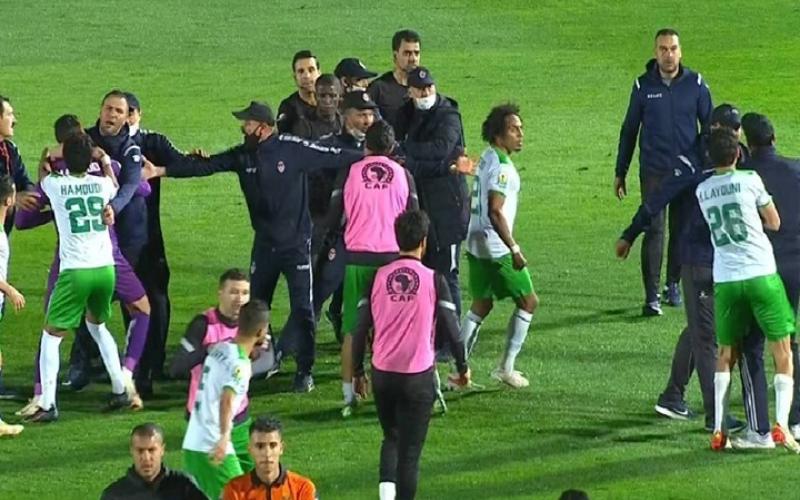 وعند إطلاق الحكم التونسي الصادق السالم، صافرة نهاية المباراة، سادت حالة من الفوضى في الملعب، بعد توجه الجهاز الفني ولاعبي المصري البورسعيدي نحو الحكم واشتبكوا معه احتجاجا على قراراته خلال المباراة والتي اعتبروها "ظالمة" بحقهم.