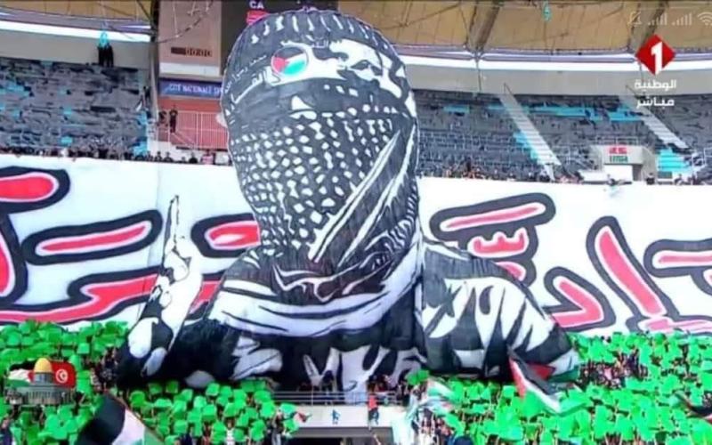 اكتست مدرجات ملعب "رادس" في ضواحي تونس بأعلام فلسطين واليافطات المؤيدة لها خلال المباراة التي فاز بها الأفريقي على الأولمبي الباجي 3-1 في الدوري التونسي لكرة القدم.