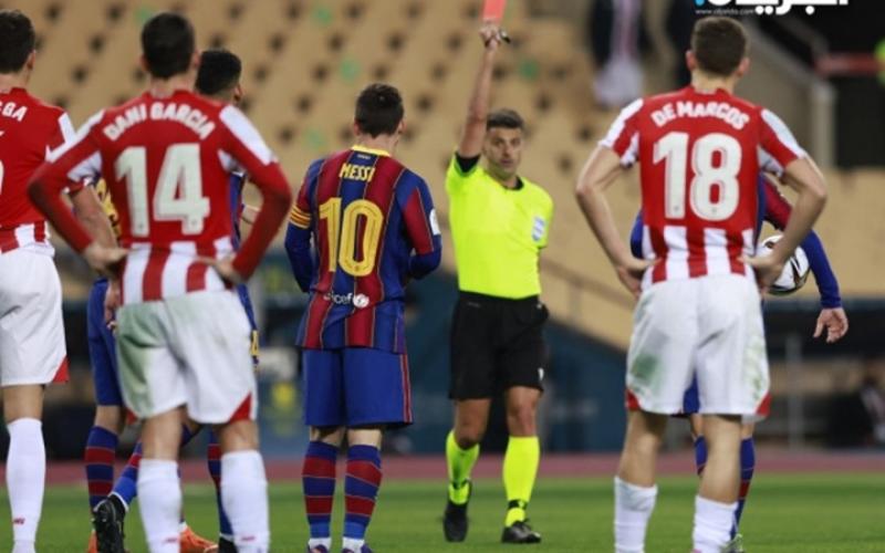 تلقى النجم الأرجنتيني ليونيل ميسي لاعب فريق برشلونة لكرة القدم، البطاقة الحمراء خلال المباراة النهائية لكأس السوبر الإسباني لموسم 2020-2021، التي خسرها النادي الكتالوني أمام أتلتيك بيلباو على ملعب "لا كارتوخا" بمدينة إشبيلية.