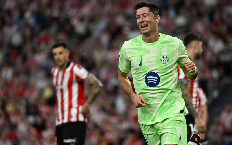 واصل النجم البولندي روبرت ليفاندوفسكي، تألقه بقميص برشلونة، بعدما قاد فريقه الكتالوني للتقدم على أتلتيك بيلباو، بثنائية سريعة في الشوط الأول، من مواجهة الجولة الأخيرة بالليجا، على ملعب سان ماميس.