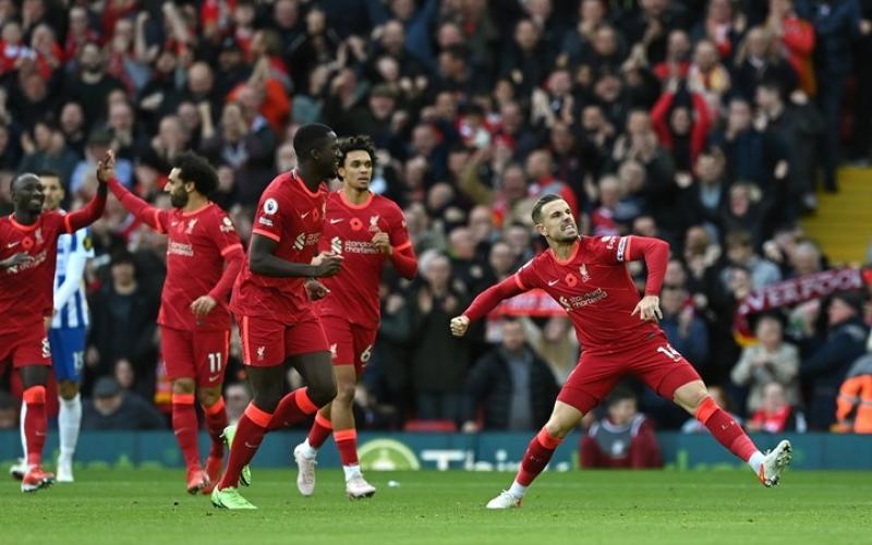 ورفع ليفربول رصيده إلى 22 نقطة في المركز الثاني بفارق ثلاث نقاط عن تشيلسي المتصدر فيما صار رصيد برايتون 16 نقطة في المركز السادس مؤقتاً.