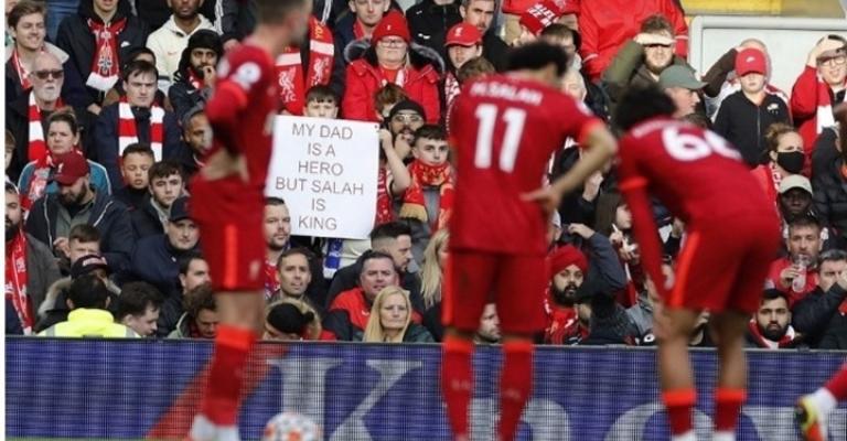 بعث طفل من مجعي فريق ليفربول برسالة مؤثرة لنجمه محمد صلاح، خلال مباراته أمام ضيفه برايتون (2-2) التي جمعتهما السبت، وذلك في الجولة العاشرة من الدوري الإنجليزي الممتاز لكرة القدم. ورفع الطفل الصغير