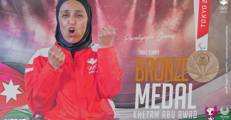 حصدت لاعبة المنتخب الوطني لكرة الطاولة البارالمبية ، ختام أبو عوض ، على الميدالية البرونزية ، في دورة الألعاب البارالمبية (طوكيو ٢٠٢٠). وأهدت أبو عوض الأردن ثاني ميدالياته في هذه الدورة بعد ذهبية عمر
