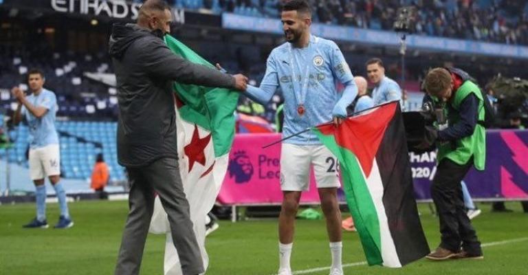 رفع النجم الدولي الجزائري رياض محرز علم فلسطين إلى جانب العلم الجزائري، خلال احتفالاته مع رفاقه في مانشستر سيتي بالتتويج بلقب الدوري الإنجليزي الممتاز لكرة القدم. وكان اللاعب الجزائري ضمن عدد من