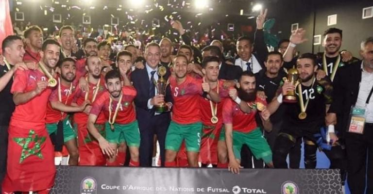 توج المنتخب المغربي لكرة القدم داخل القاعة بالنسخة الخامسة من كأس العرب، بعد فوزه السبت بالقاهرة على نظيره المصري مستضيف الدورة، بنتيجة 4-0 في نهائي البطولة. وسجل المنتخب المغربي الهدف الأول في شباك