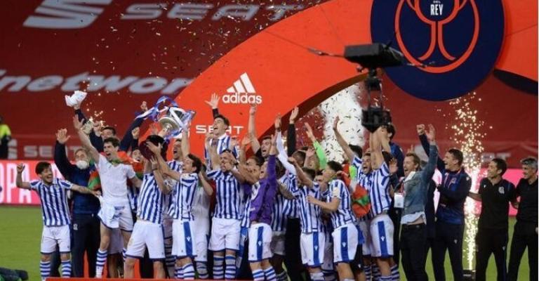 توج فريق ريال سوسيداد بلقب كأس ملك إسبانيا لكرة القدم لموسم 2019-2020، بفوزه على أتلتيك بيلباو (1-0)، السبت، في المباراة النهائية للبطولة، التي تأجلت لقرابة عام. ويدين سوسيداد بالفضل في هذا الفوز