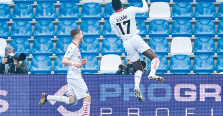 عاد ميلان إلى سكة الانتصارات وبقي متصدرا أمام جاره اللدود إنتر، وذلك بعدما حسم مواجهته الصعبة مع مضيفه ساسوولو 2-1، أولهما بات الأسرع في تاريخ الدوري الإيطالي لكرة القدم عبر مهاجمه الدولي البرتغالي