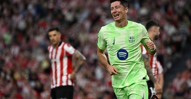 واصل النجم البولندي روبرت ليفاندوفسكي، تألقه بقميص برشلونة، بعدما قاد فريقه الكتالوني للتقدم على أتلتيك بيلباو، بثنائية سريعة في الشوط الأول، من مواجهة الجولة الأخيرة بالليجا، على ملعب سان ماميس