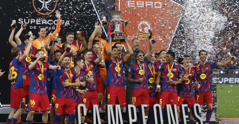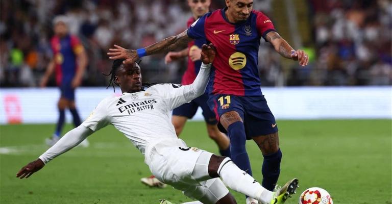 حسم برشلونة المواجهة أمام غريمه ريال مدريد 3-2 وتوّج بطلاً لكأس السوبر الإسبانية للمرّة الـ16 في تاريخه بملعب الإنماء بمدينة الملك عبدالله الرياضية في جدّة. وسجل كل من رافينيا (36 و73) وروبرت