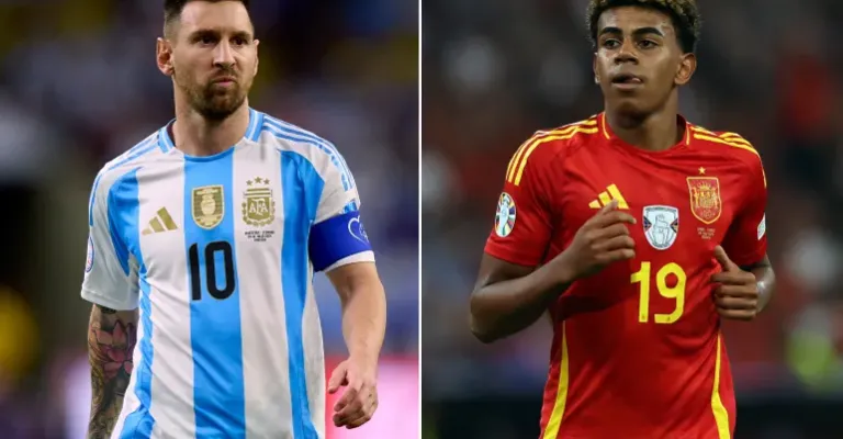 سيتواجه "الأسطورة" ليونيل ميسي مع "المعجزة" لامين جمال، في مباراة كبيرة مرتقبة تجمع بين الأرجنتين وإسبانيا في نهائي كأس فيناليسيما لكرة القدم عام 2025. ويجمع نهائي كأس "فيناليسيما 2025" بين بطل كأس