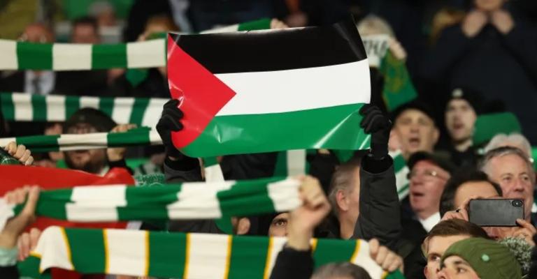 رفع الآلاف من مشجعي فريق سلتيك الأسكتلندي أعلام فلسطين قبل مباراة الفريق أمام ضيفه أتلتيكو مدريد الإسباني، في بطولة دوري أبطال أوروبا لكرة القدم. وكان عرض "التيفو" بألوان علم فلسطين واضحا في النصف