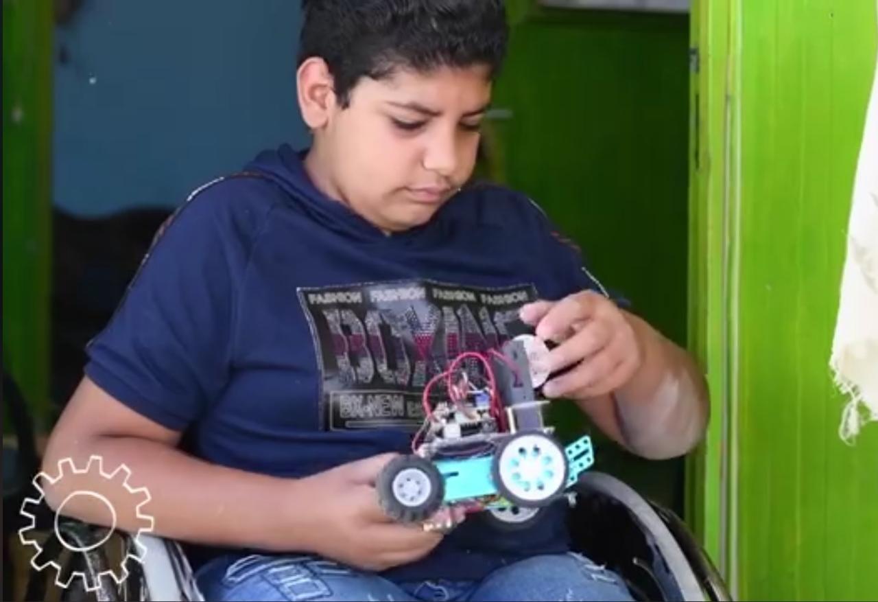 قصة جديدة من قصص التحدي بطلها الطفل السوري حمزة حرب الذي تحدى إصابته بالشلل بالأطراف السفلية وأبدع في مجال تكنولوجيا الروبوتات.