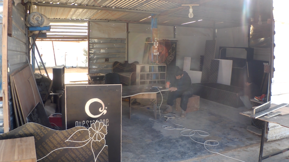 اللاجئ في المخيم أبو كرم يؤكد أن ما دفعه إلى العمل في التنجيد والتفصيل في محل يملكه داخل المخيم، هو استمرار الحرب في سورية، كإشارة منه إلى ضرورة التعامل مع واقعهم كلاجئين، مؤكدا أن غالبية اللاجئين في المخيم دفعتهم الفكرة نفسها إلى العمل كل في مهنته.