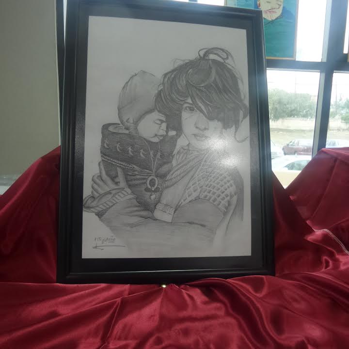 الفنان مثنى الحاج علي، ترك في بلدته خربة غزالة الحورانية، كل لوحاته التي رسمها من سن الثامنة، بعد أن لجأ إلى الأردن، إلا أنه تمكن من تطوير موهبته بتشجيع من عائلته، مستعينا بوسائل الاتصال الحديثة.