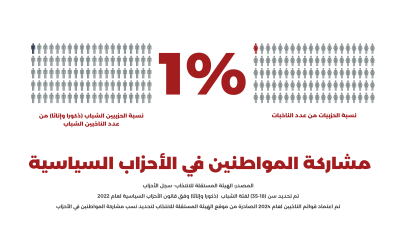 فرض قانون الأحزاب السياسية رقم 7 لعام 2022،[1] نسبة مشاركة الشباب في الأعضاء المؤسسين للحزب السياسي 20%، والنسبة ذاتها لمشاركة المرأة أيضاً، وهو ما وجده بعض الأحزاب عائقاً أمام تصويب أوضاعهم.