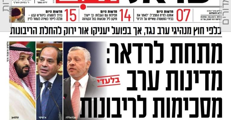 نشرت صحيفة "اسرائيل اليوم" المحسوبة على اليمين الاسرائيلي، خبرا على صفحتها الرئيسية تدعي فيه موافقة دول عربية خلف الكواليس على خطة الاحتلال الاسرائيلي لضم غور الأردن ومناطق شمال البحر الميت واراضٍ في