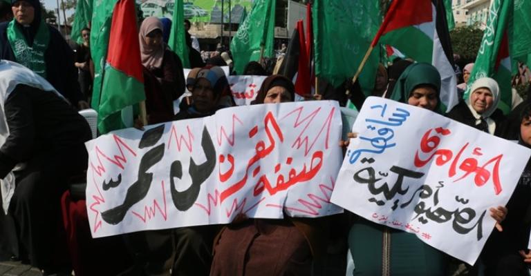 أكد الرئيس الفلسطيني محمود عباس رفضه للخطة الأميركية للسلام في الشرق الأوسط، مؤكداً أن الوضع قابل للانفجار في المنطقة ولن تتغير الأوضاع إلا باستعادة الأمل في السلام. وتابع سنواجه تطبيق هذه الصفقة على