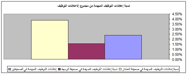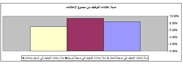 الصحيفتان معاً نشرتا قرابة 2100 إعلان توظيف شهرياً، بنسبة 8.4 % من مجمل الإعلانات فيهما. بينما بلغت نسبة إعلانات التوظيف في صحيفة الوسيط ما يقارب 9.4 % من مجموع الإعلانات، مقارنة بـ 7 % في صحيفة الممتاز.