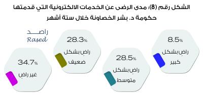 %8,5من الأردنيين راضون بشكل كبير عن مستوى الخدمات الالكترونية، و28,5%من الأردنيين راضون بشكل متوسط.