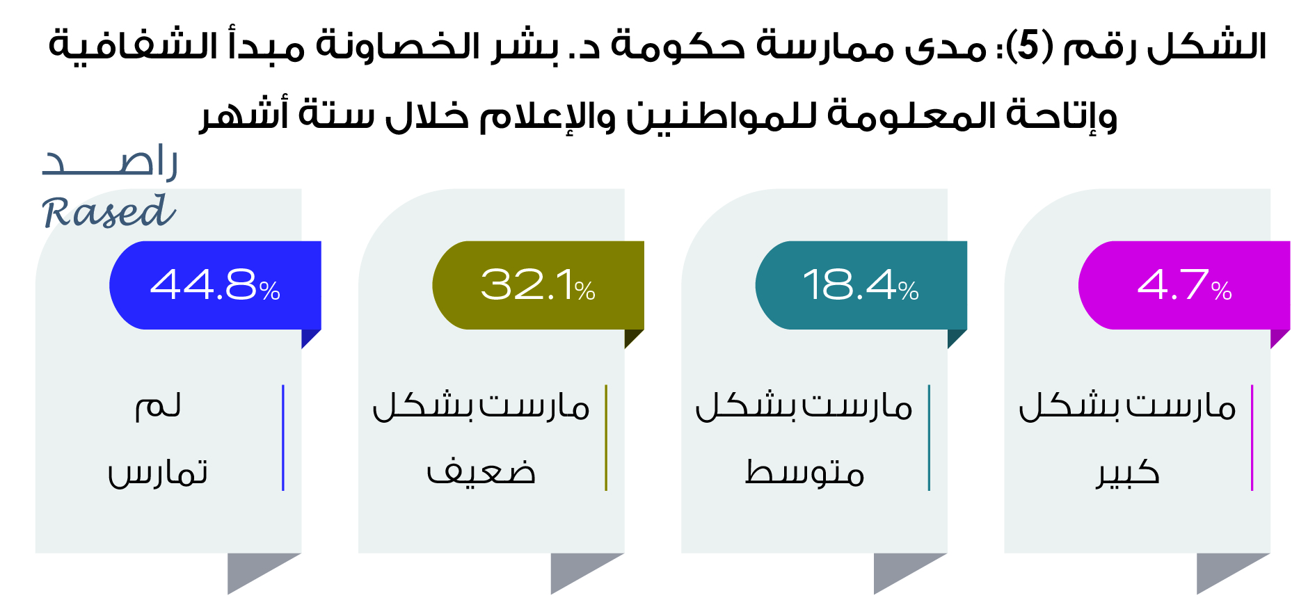 44,8% من الأردنيين يرون أن الحكومة لم تكن شفافة في إتاحة المعلومة للمواطنين والإعلام.