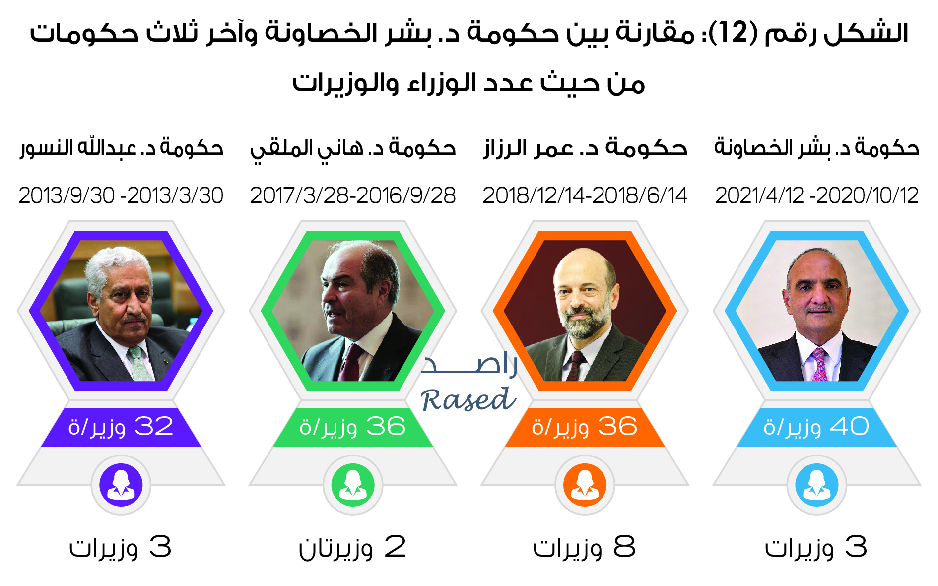 حكومة الخصاونة الأعلى بعدد الوزراء خلال ستة أشهر مقارنة بآخر ثلاث حكومات.