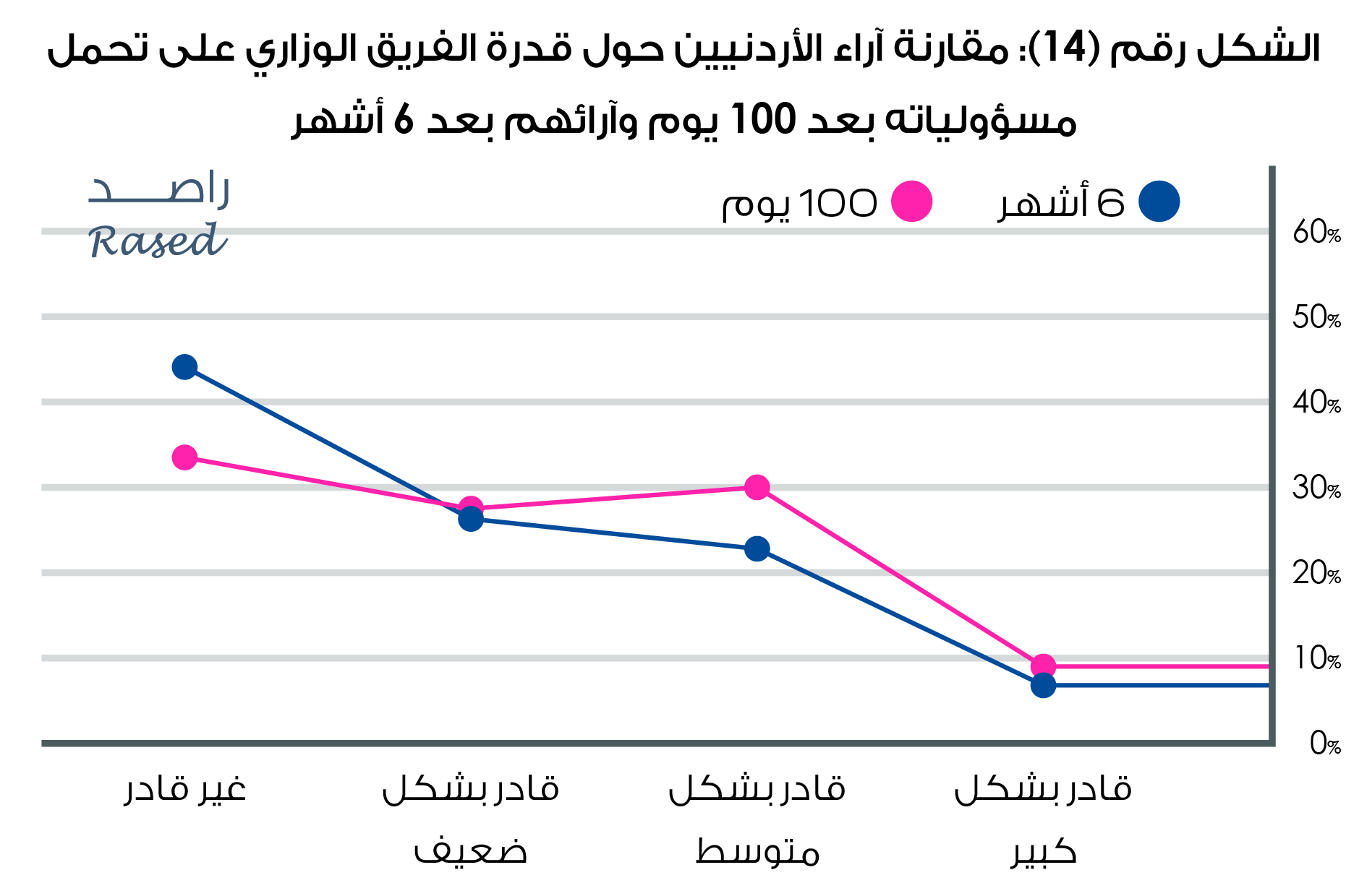 44,1% من الأردنيين يرون أن الفريق الوزاري لم يكن قادراً على تحمل مسؤولياته.