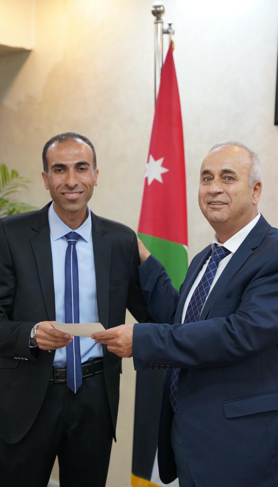 قام الدكتور حسام ابو علي مدير عام دائرة ضريبة الدخل والمبيعات بتسليم الفائز بالجائزة النقدية الاولى في السحب الثالث لجوائز تطبيق فواتيري السيد شادي يوسف العبد الله شيكا بالجائزة والبالغ قيمتها 25 ألف دينار في مبنى دائرة ضريبة الدخل والمبيعات.