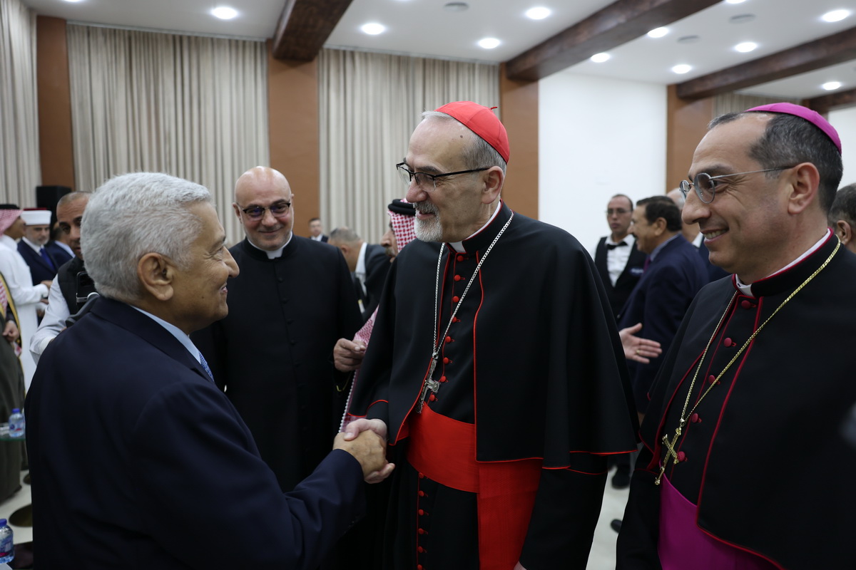 وجاءت تصريحات غبطته خلال استقباله في قاعة آل زيادات في منطقة الفحيص، بحضور رؤساء الوزراء السابقين عبدالله النسور، وسمير الرفاعي، وعمر الرزاز، وسفراء دول ايطاليا وفرنسا وقطر والجزائر، ووزير النقل نضال القطامين، ومحافظ البلقاء فيصل المساعيد، ومتصرف لواء الفحيص وماحص صفوان المبيضين، وعدد من الوزراء السابقين والنواب والأعيان إلى جانب النائب البطريركي للاتين في الأردن المطران إياد الطوال، وكهنة من كنائس اللاتين والروم الأرثوذكس، ورجال الدين الإسلامي، وحشد من أبناء المنطقة والمدعوين.