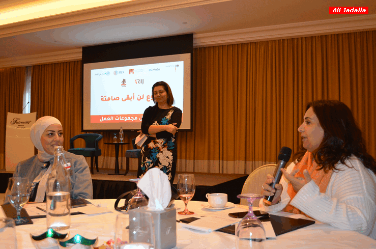 وناقشت المشاركات والمشاركون ضمن مجموعات عمل التحديات التي تواجه الصحفيين والصحفيات في المؤسسات الإعلامية، في الأردن والعالم العربي، إضافة إلى ما يمكن أن يقدمه مشروع ”لن أبقى صامتة“ في هذا الإطار، وكيفية العمل مع الأفراد ومؤسسات المجتمع المدني لتحقيق أهداف المشروع.