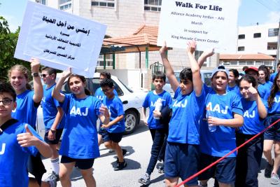 قامت أكاديمية التحالف الأردنية (ألايانس أكاديمي AAJ) في اليادودة، من خلال دائرة تطوير الحياة التي تعنى بتنشئة الطلاب في قيم حياتية ومجتمعية سامية، وبمشاركة مركز الحسين للسرطان، بتنظيم حملة توعية حول مرض السرطان السبت 13 أيار شملت سلسلة نشاطات ومحاضرات والمشاركة في مسيرة وتقديم التبرع لمؤسسة الحسين للسرطان.