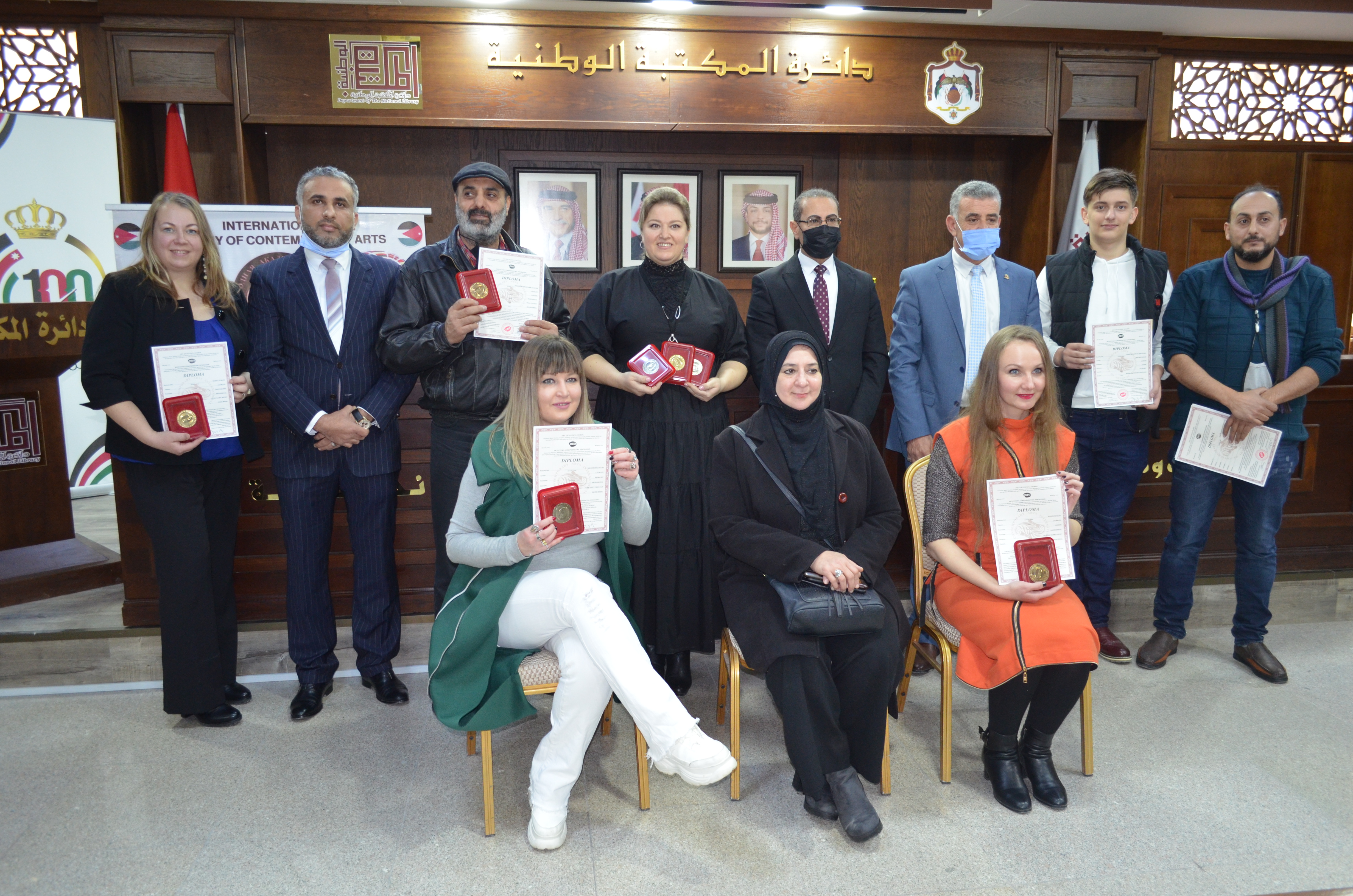 عمان نت 20 شباط ( علي جادالله ) - تحت رعاية عطوفة أمين عام وزارة الثقافة، أعلنت الأكاديمية الدولية للفنون المعاصرة في المملكة الأردنية الهاشمية ،اليوم الأحد في قاعة المكتبة الوطنية عن فوز تسعة فنانين بمسابقة “الفن المعاصر" في موسمها الثاني عشر. وفي نهاية الحفل كرمت الفنانة التشكيلية الممثل الرسمي للأكاديمية الدولية للفنون المعاصرة "اولغا دروموفا" الفائزين بالمسابقة ، وجلهم فنانون ومصممون وصانعو مشاريع ومصورون ومصورو فيديو. وحضر الحفل عدد من الشخصيات الاجتماعية والفنية.