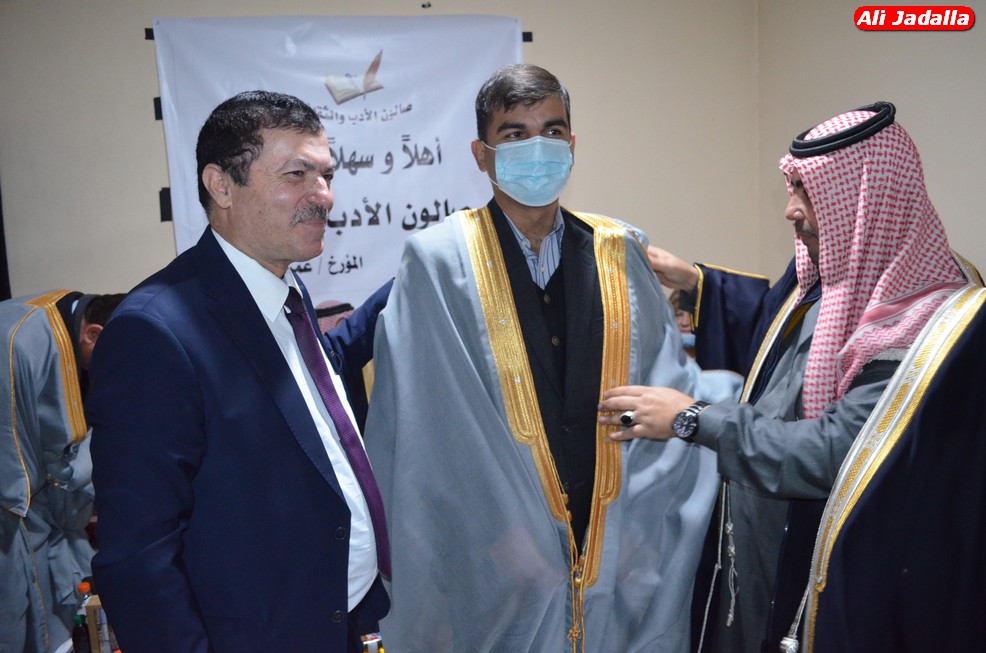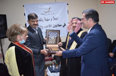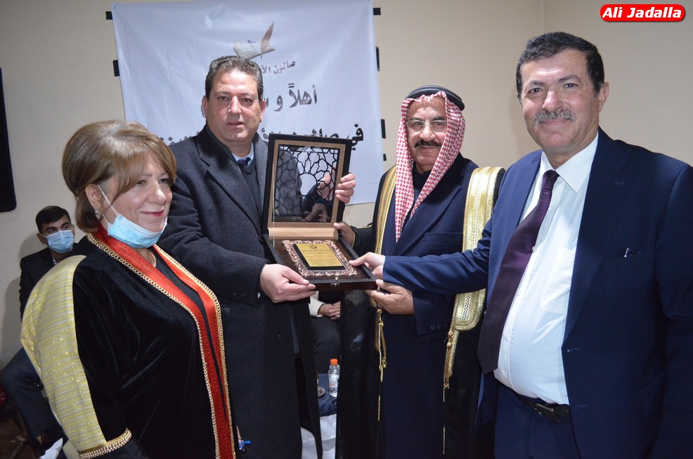 وفي نهاية الاحتفال قام عميد الصالون محمد عواد النعيمات والسيدة سهام الخفش بتقديم الدروع لمستحقيها