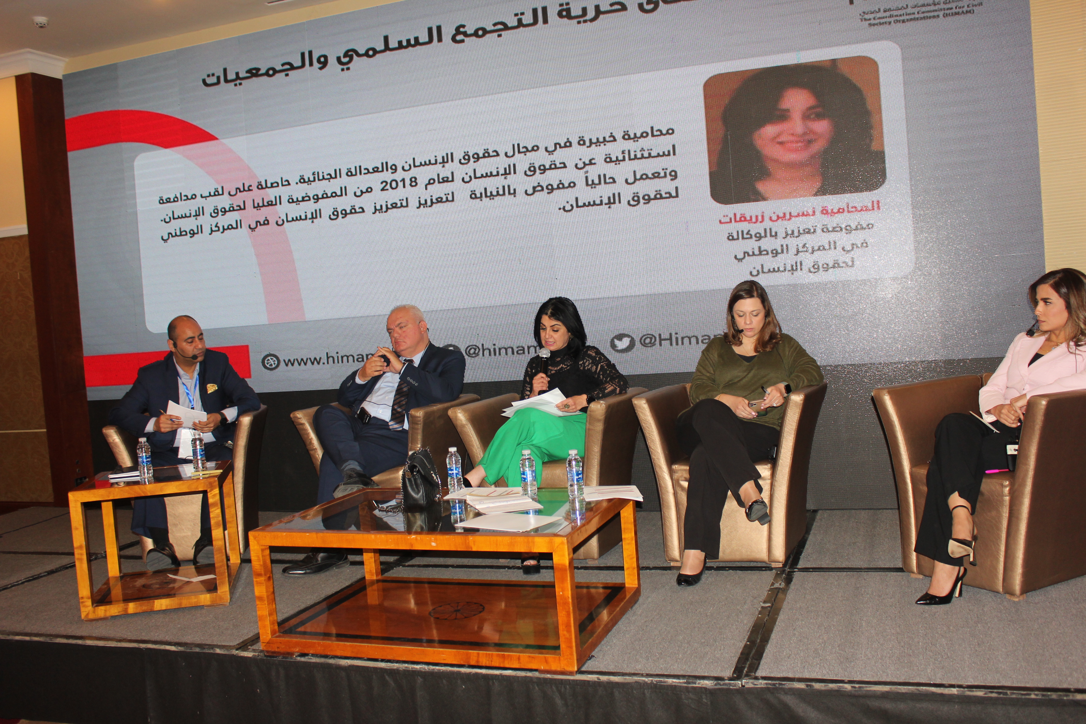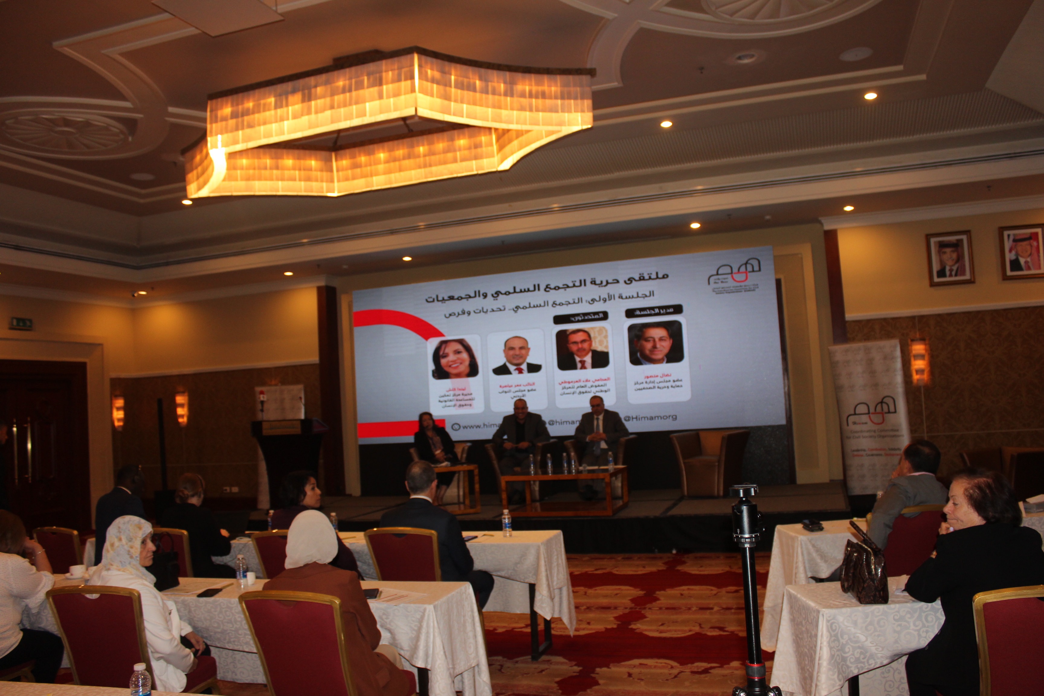 منسقة هيئة تنسيق مؤسسات المجتمع المدني "همم" عبير مدانات، قالت إن هذا الملتقى يأتي لتسليط الضوء على واقع حق التجمع السلمي وتكوين الجمعيات وحرية عملها وقدرتها على القيام بدورها. حيث أن حق التجمع السلمي وحق تكوين الجمعيات يتقاطعان مع الكثير من الحقوق وأهمها قدرة الأفراد على ممارسة حق التعبير ودفاعهم عن حقوقهم التي يكفلها الدستور الأردني، وقد دعت "همم" المقرر الأممي الخاص المعني بالحق في التجمع السلمي وتكوين الجمعيات، وهو أحد الخبراء الدوليين التابعين لمجلس الأمم المتحدة لحقوق الإنسان وله ولاية قانونية بمتابعة القدرة على ممارسة هذا الحق، بحيث يستقبل الشكاوى الخاصة بانتهاكه ويصدر التوصيات والتقارير على مستوى الدول من حيث التزامها في حمايته.