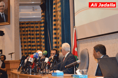 وزير التربية والتعليم وجيه عويس ، خلال المؤتمر الصحفي في مركز الملكة رانيا العبدالله لتكنولوجيا المعلومات