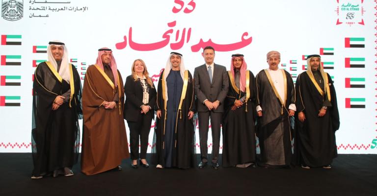 عمان نت - أقامت سفارة دولة الإمارات في عمّان، مساء يوم الاثنين احتفالاً كبيراً بمناسبة عيد الإتحاد الثالث والخمسين لدولة الإمارات العربية المتحدة بالتزامن مع الاحتفال باليوبيل الذهبي لإنشاء العلاقات