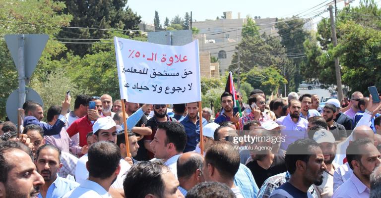 رفضت نقابة المعلمين الأردنيين مساء السبت عرضا حكوميا جديدا لنزع فتيل الإضراب الذي يدخل أسبوعه الرابع على التوالي. وأعلن نائب نقيب المعلمين الأردنيين، ناصر النواصرة، في بث عبر صفحة النقابة على الفيس