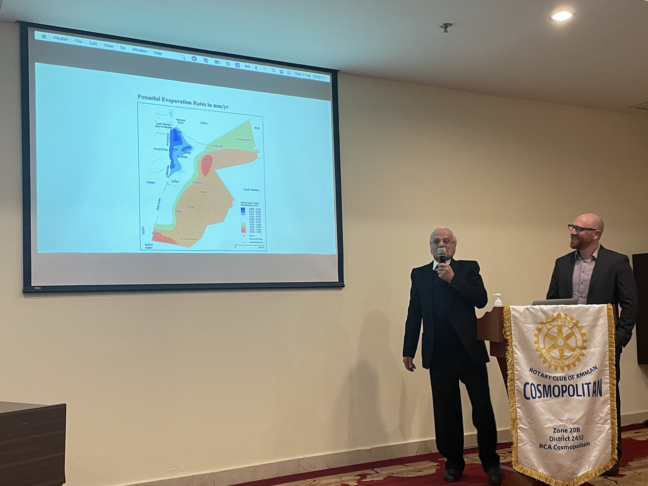 In answering to questions from Rotarians the Jordan University water expert said that water harvesting could also be deployed to help cover the needs in certain water-deprived areas. “Historically from thousands of years ago, we know that sophisticated water harvesting channeling and storing efforts took place. We need to revisit water harvesting,” he answered.