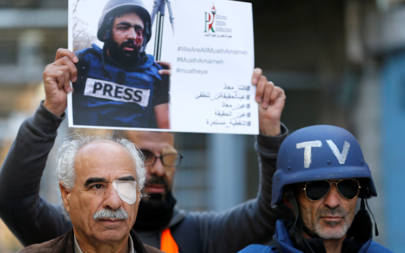 The International Press Institute (IPI), a global network of editors, media executives and journalists for press freedom, today condemned a recent incident in which a Palestinian photographer was seriously injured in the eye by an apparent Israeli sniper as well as the teargassing by Israeli security forces of journalists protesting the incident.On November 15, Moath Amarneh, a photographer for the Sanad news agency and GMedia company, was covering protests by Palestinian residents in the West Bank when he was hit in the left eye by shrapnel from a rubber bullet apparently fired by an Israeli sniper.As the bullet hit a nearby surface and exploded, a two-centimetre-long fragment became embedded behind his eye close to his brain, requiring several hours of surgery to be removed. Amarneh was wearing a helmet and a vest clearly bearing the words “press” at the time when he was struck.“Targeting civilians is unacceptable. Targeting a journalist with clearly marked press insignia is a deliberate attempt to hide the truth from the world”, IPI Executive Board Vice Chair Daoud Kuttab saidOn Sunday, November 17, a group of Palestinian journalists organized a sit-in protest in solidarity with Amarneh in Bethlehem. Israeli forces used tear gas to disperse the crowd, leading to further displays of solidarity on social media from journalists wearing symbolic eye patches.“All too often, Palestinian journalists are caught in the crossfire and injured because of the heavy-handed actions of Israeli security forces”, IPI Director of Advocacy Ravi R. Prasad said. “We call on Israeli authorities to investigate the matter and to also refrain from targeting journalists doing their job and speaking out against attacks on them.”