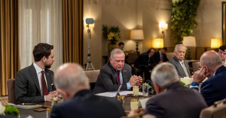 King Abdullah II held a meeting on Wednesday with several former prime ministers and officials, focusing on the most prominent regional developments and the measures taken by state agencies to deal