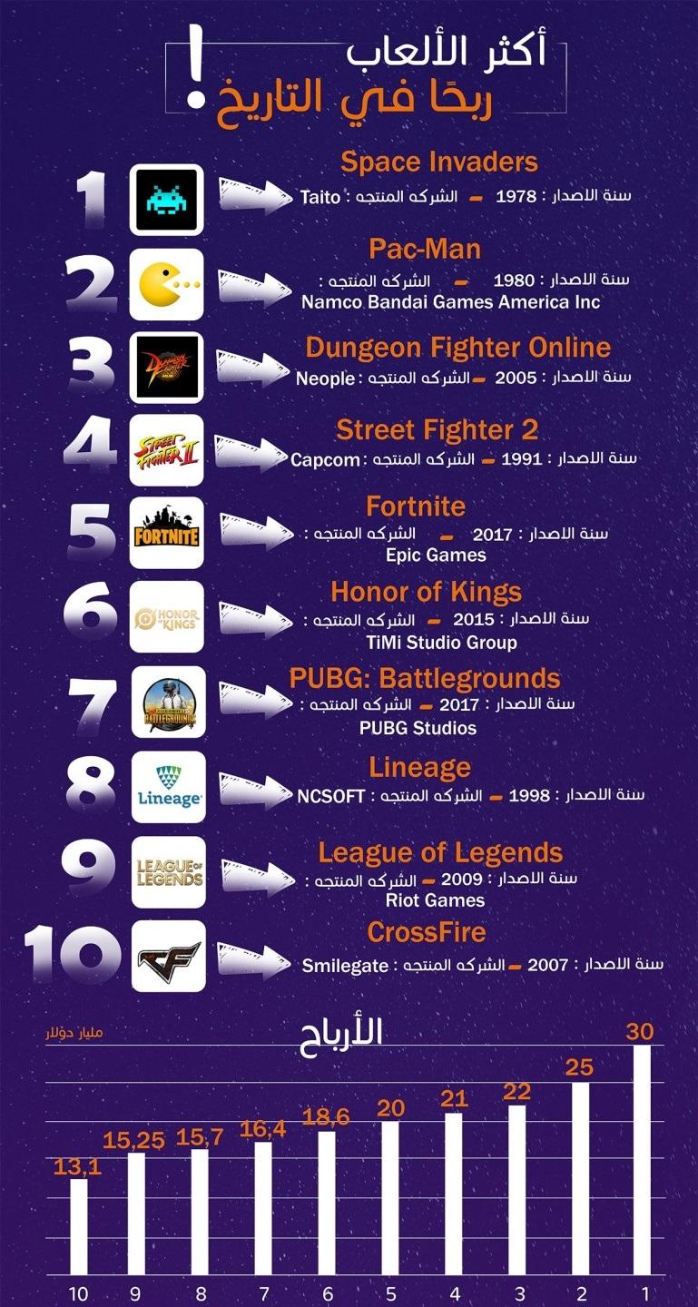 أكثر الألعاب ربحًا في التاريخ (إنفوجراف)